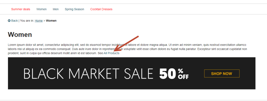 Use this option to improve the Search Engine Optimization of a category page, A category landing page also lets you add rich content such as banners, videos and text on top of the category page. T