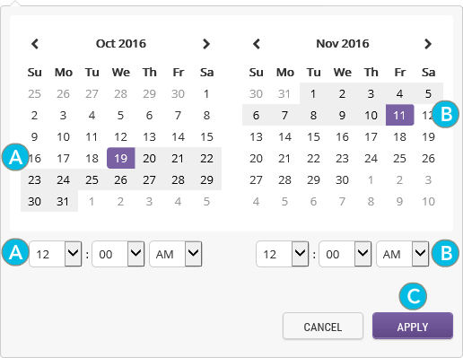 c. | Click Apply to set your Date range. |