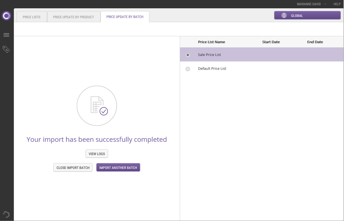 To return to the welcome screen for the Price Update by Batch tab, click Close import batch.