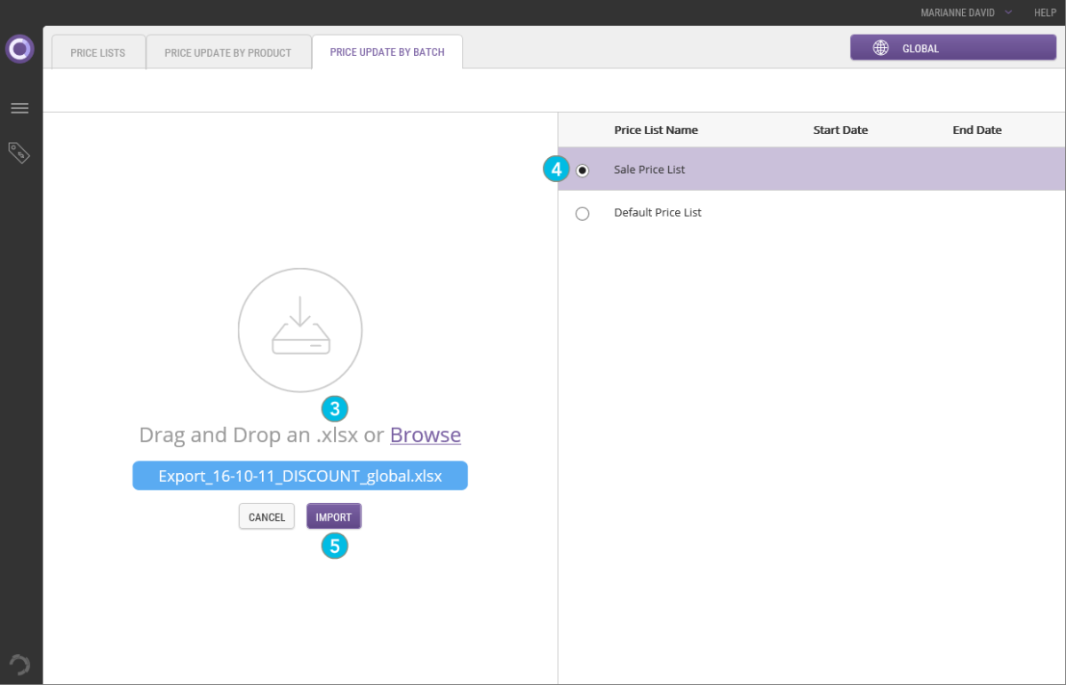The Import process is a convenient way to update a price list without having to change the price of each product
