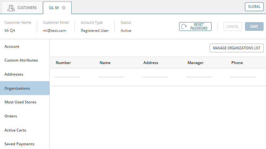 In this tab, you can see the organizations that the customer is affiliated with, the number associated with the organization, it's name, address, the organization manager and the manager's phone number.