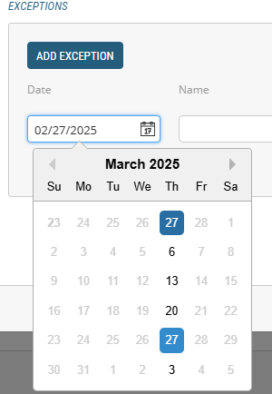 5. | Enter the date (only the dates for this day of the week will appear in the calendar). |