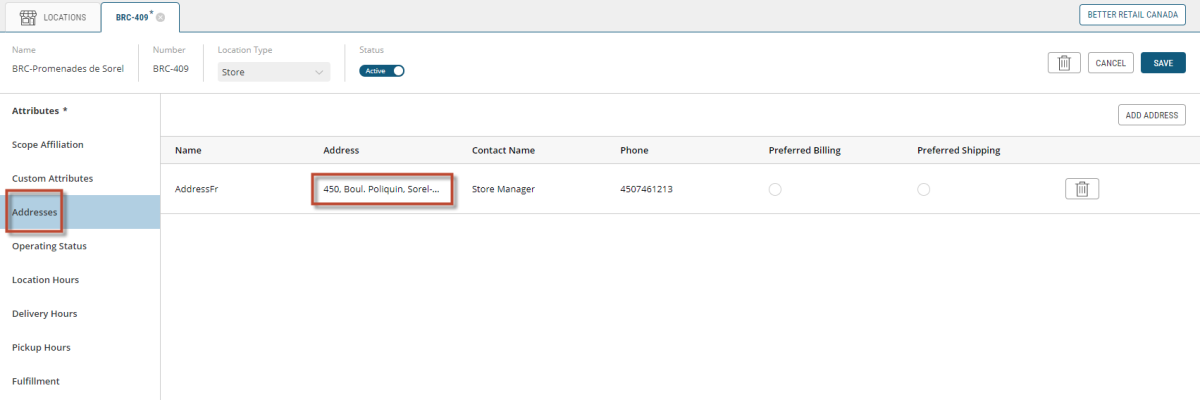 Important: When using a Shippo account as a carrier provider and Canada Post is used , or if Canada post is used as a carrier provider, you must enter the Store Manager's name and phone number in the Location Attributes, otherwise, the manifest cannot be created in the Mobile Store Fulfillment.