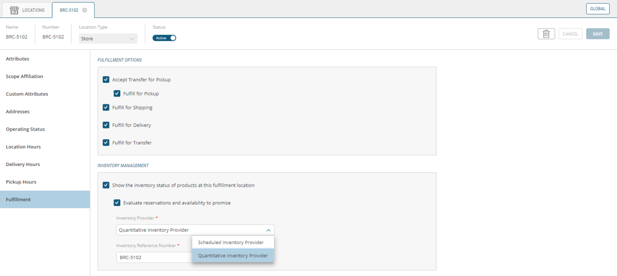 A Quantitative Inventory Provider evaluates the inventory status of items assigned to this fulfillment location based on current quantities.