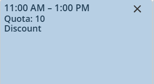 However, if you had a quota of 10 and you decreased it to 5 but 7 customers have selected this timeslot, your location will have to fulfill the exceeding orders because they were already confirmed. When the changes are applied, the timeslot will become unavailable and customers and Order Management application users won't be able to select it to create new orders.