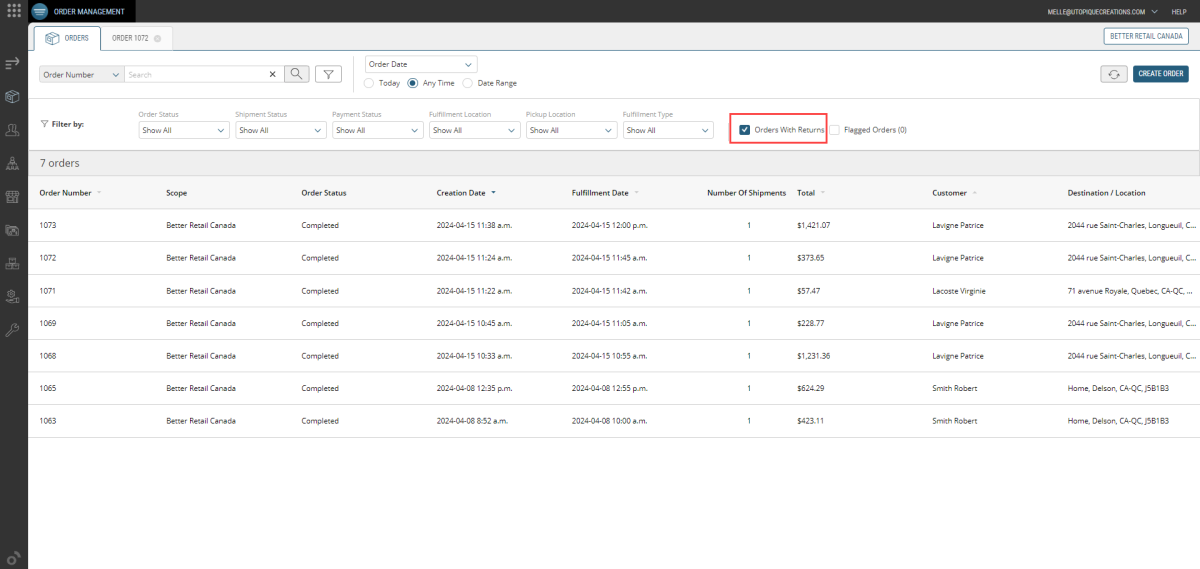A new filter allows you to filter orders with returns so you can easily manage orders with returns.