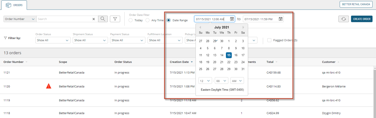 If you have determined that an order was placed between two specific dates, you can filter orders by applying a date range.