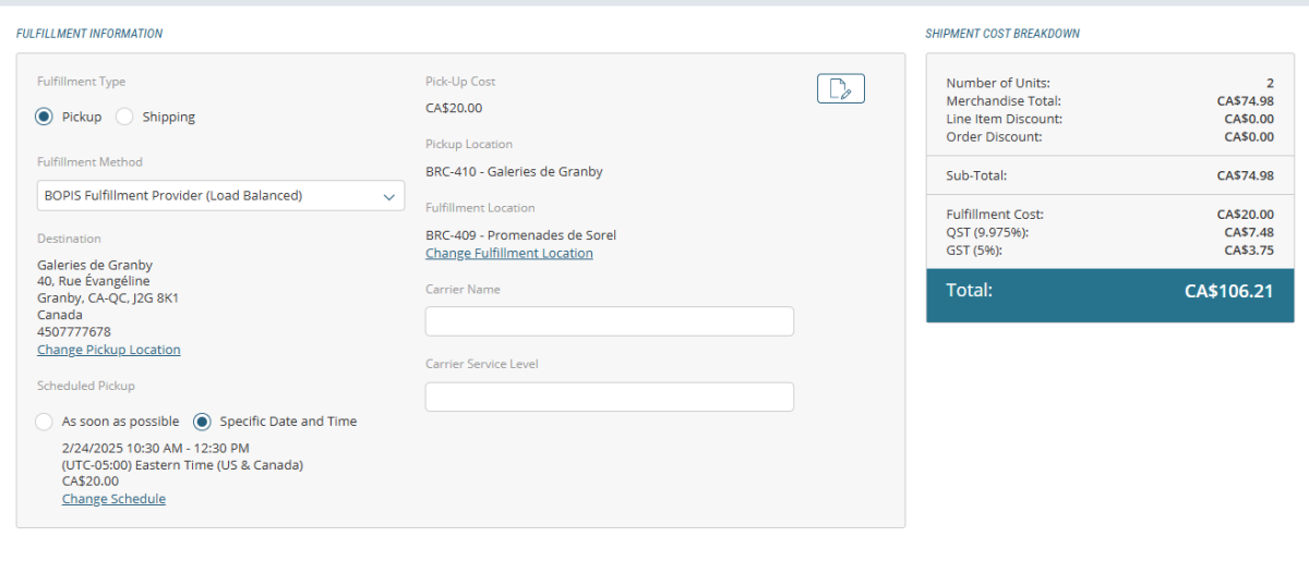 2. | Select Pickup or Delivery radio button under Fulfillment Type. |