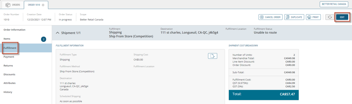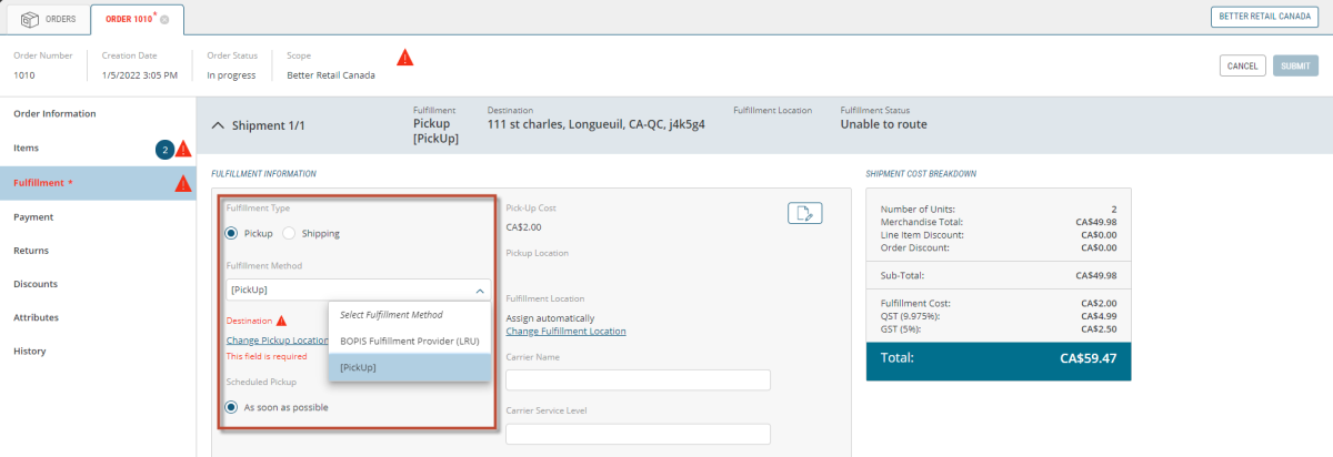 1. | In an order, select Fulfillment section, select the fulfillment type. |