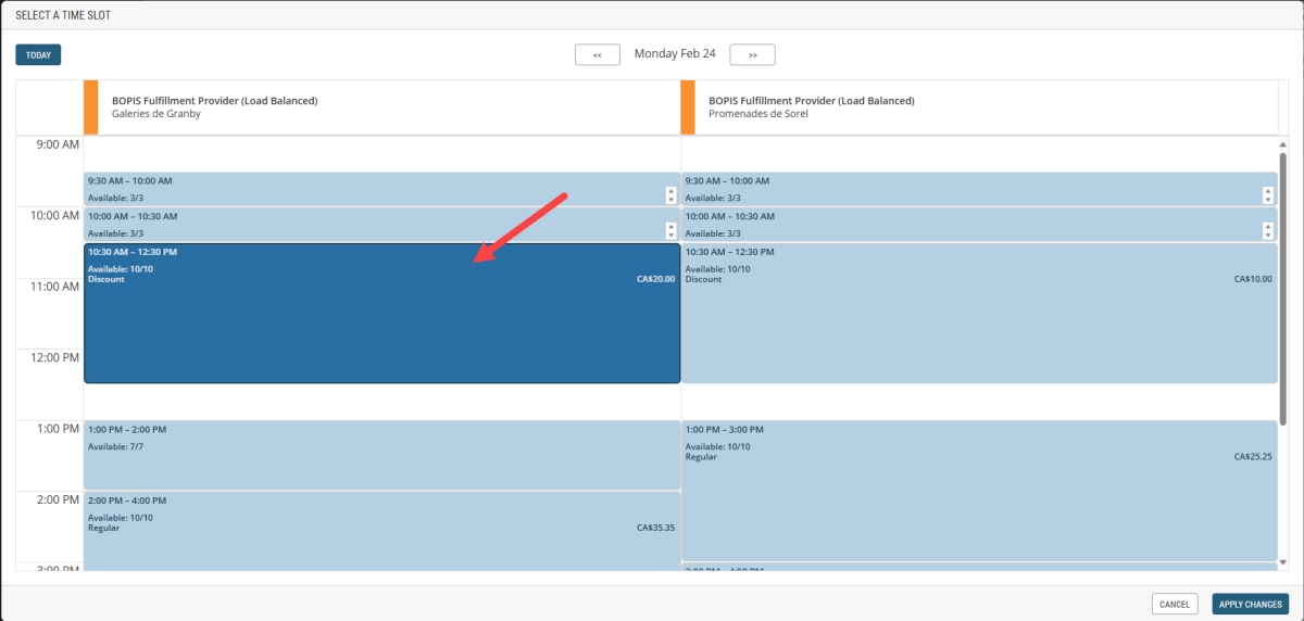 Tip : If you see a price in the timeslot you selected, it means that timeslot definition types have been configured.