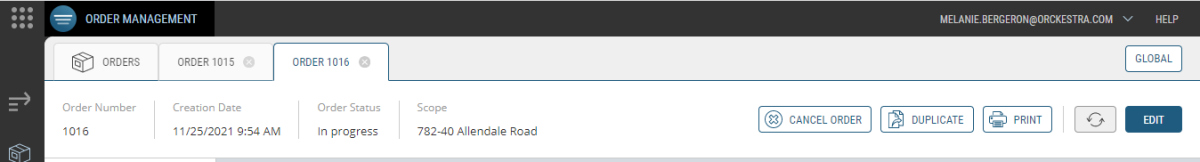 Tip: When viewing other tabs of this application, clicking the Orders tab brings you back to the orders list and previously created orders.