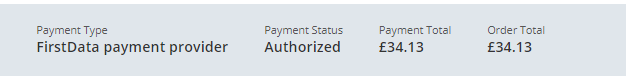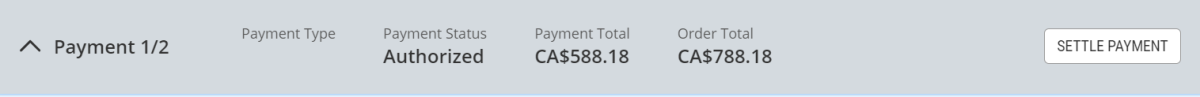 • | The Payment Number signifies the total number of payments for the order as well as the payment that is currently being viewed. An order containing multiple shipments will not have the same number of payments. Multiple payments will appear only if the number of items have been increased during an order modification or when the customer requires multiple payment methods (using 2 credit cards or paying part of the order in store and the remainder using a credit card). |