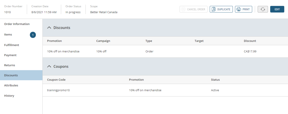 Important: Promo codes can only be added to new orders. You can only delete an existing promotion in a new order. Promotions cannot be added because promotions may no longer be applicable..