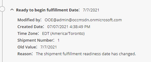 • | Created Date: The date and time at which the event occurred (not the date and time the order was created) |
