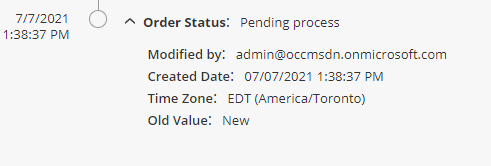 In the Order History tab, statuses are sorted chronologically. The oldest status appears at the bottom of the screen and most recent status is displayed at the top.