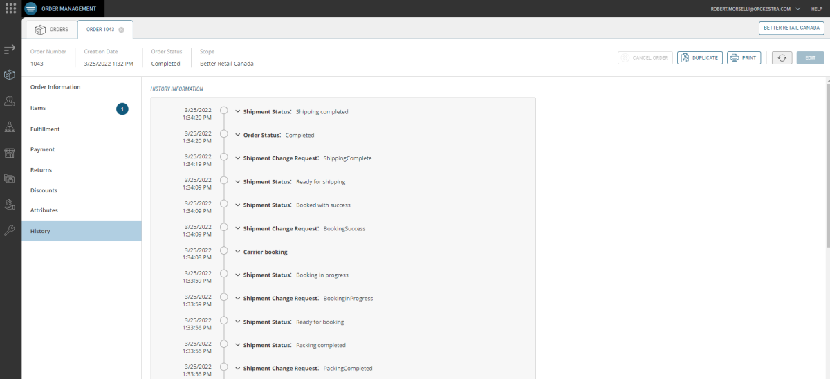 If a customer has questions about the progress of a shipment or other actions that their orders underwent, you can refer to the Order History tab to view and understand the order's journey.