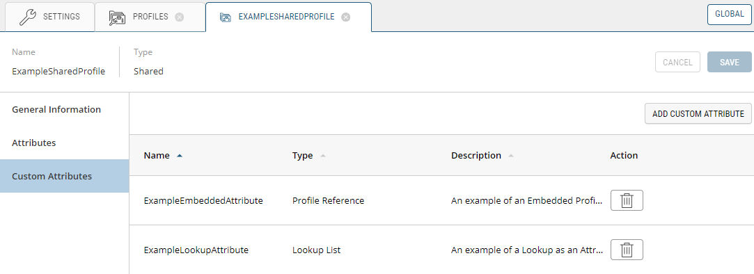 Figure 4 - A Custom Profile's Custom Attribute's tab