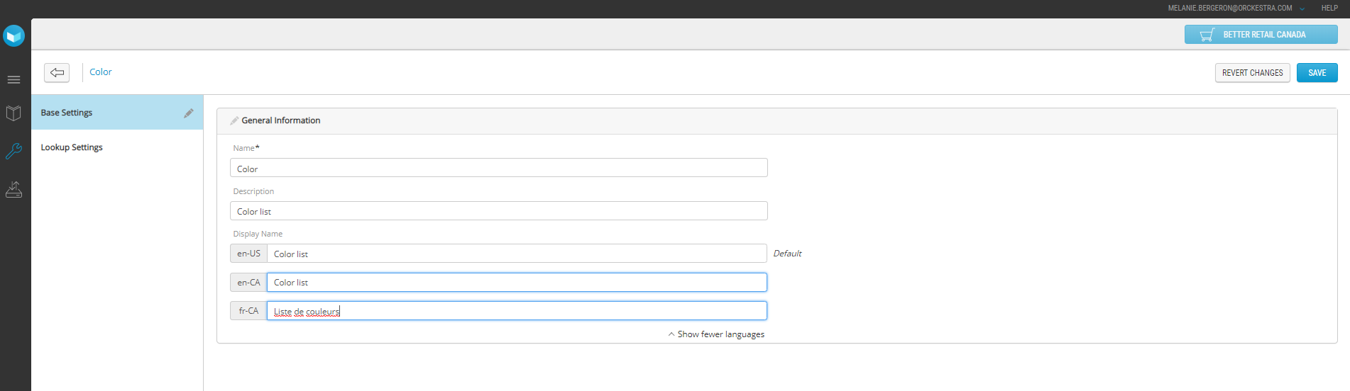 Lookups are lists of choices that can be defined as attributes in Orckestra Commerce Cloud. You can add or edit existing lookups. Lookups cannot be deleted once created. Use this option to create lookup types for attributes to be used in profiles, products and categories.