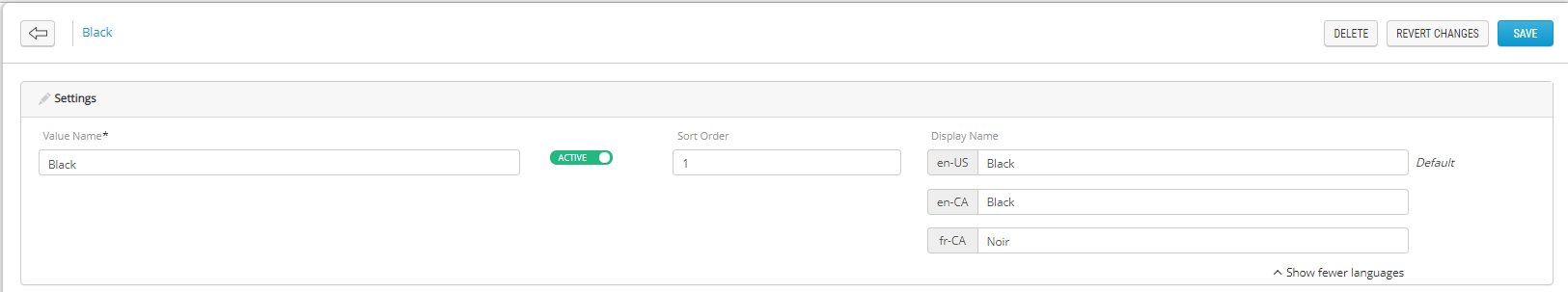 Note: When a multilingual (language-culture) field is left empty, it reverts to the default language value. If no display name value is available, the Lookup Name is used as a display name for all languages. It is essential to configure these values because they may be visible on your website.