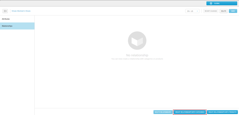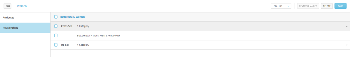 Note : Since the Product Management is under development, it is not currently possible to modify existing relationships. To modify a relationship, delete the current relationship and create a new one. This option will be made available in a later iteration of Orckestra Commerce Cloud.