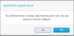 Attention: Before deactivating a lookup value, make sure the lookup is not already in use, as it will impact all products using this lookup.