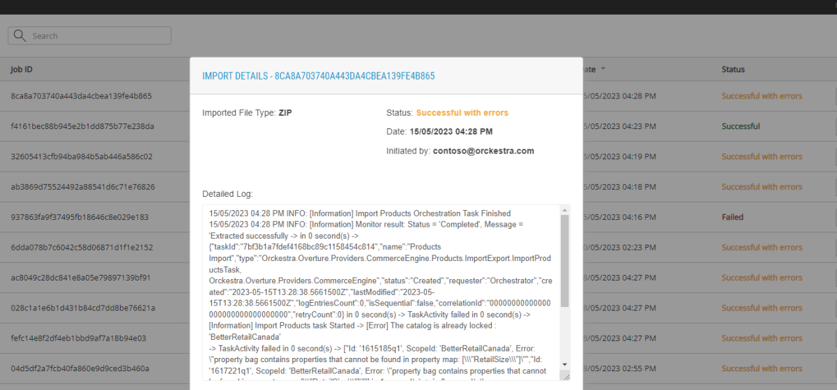 When importing products, you can get the Successful with errors status, represented by an orange color. This status indicates that the import process completed successfully overall, but some errors were encountered during the import. It serves as a reminder for you to consult the logs and investigate the products that couldn't be imported successfully.