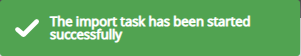 5. | If the import task has been started successfully, a green notification appears at the top-right corner of the screen. However, this does not mean that the import is successfully completed. |