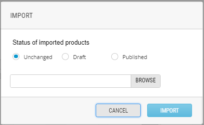 2. | In the Import window, select the Status of imported products. You can choose from: |