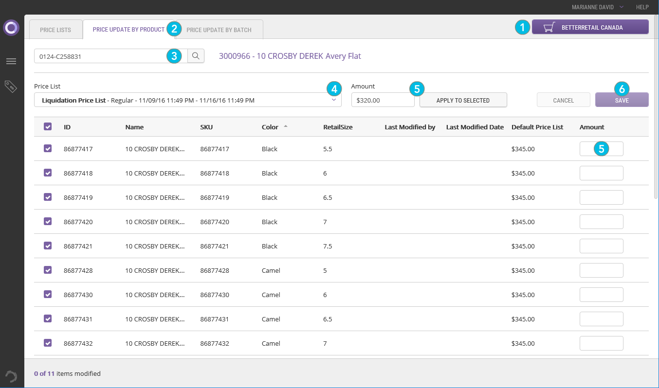 You must save your changes prior to selecting a different price list in the drop-down list. Switching to a different price list without saving will result in your changes being discarded.