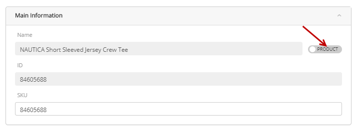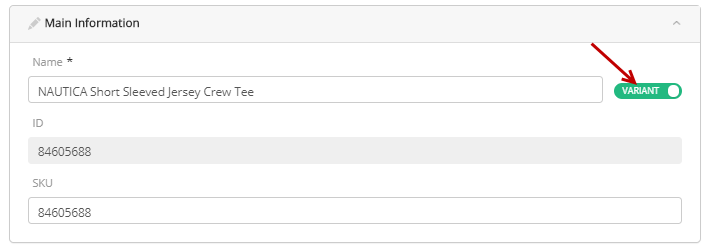 Tip: If you entered a different name for this variant in the past and wish to re-establish the inheritance of the product name, click the Product toggle. The product name will reappear in the text box.