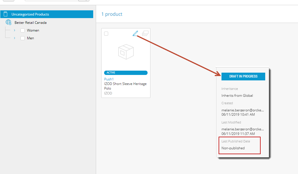 Only published products can be pushed to sales scopes.
