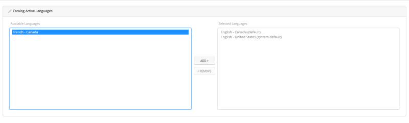 Available Languages are languages set by the system administrator. You can choose to add or remove them whether they are required by the sales scope catalog. |