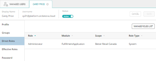 If Carey has the Administrator Direct role for the Fulfillment Application shown below: