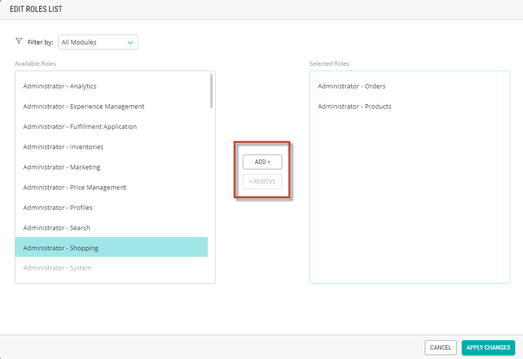 Tip: you can select several roles simultaneously by pressing CTRL and clicking on the desired roles.