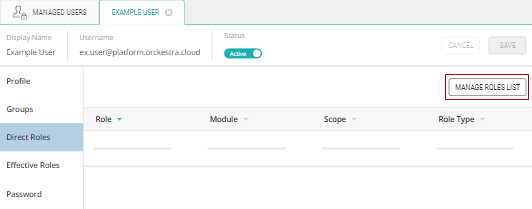 1. | Select a user and go to Direct Roles. Here you will see the roles they currently have as well as the scope that those roles fall under. |